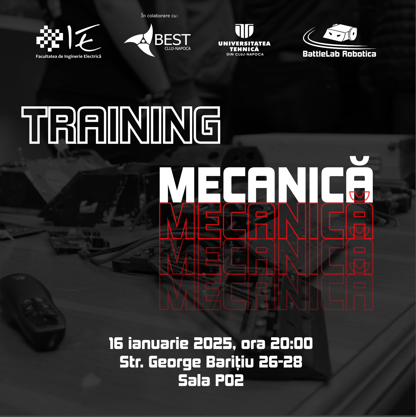 Organizația BEST Cluj-Napoca organizează în parteneriat cu Facultatea de Inginerie Electrică competiția de sumo robotic BattleLab Robotica aflată la cea de a 13-a ediție, iar săptămâna aceasta planificăm un training de mecanică pentru studenții interesați.